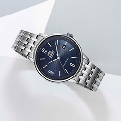 Во всех новинках коллекции ORIENT Contemporary новый механизм собственного производства. Благодаря прозрачной задней крышке можно наблюдать за его превосходной работой. Общий дизайн с тонким безелем, широким циферблатом и ушками крепления браслета способствует лучшему прилеганию часов к запястью. Эти особенности дизайна подчеркивают простой и изысканный внешний вид часов. Металлические звенья браслета и пряжка регулируются по размеру.