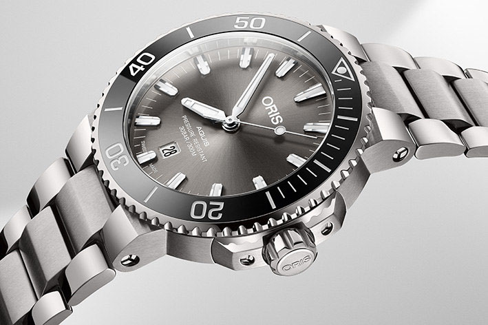 Подобные инновации характерны для творческого подхода компании Oris к часовому делу. Даже небольшие изменения могут иметь большое значение для удобства пользователя – пусть на первый взгляд эти изменения не сразу бросаются в глаза. Как и во всех часах Oris в новой модели Aquis Titanium Date задействован механический калибр. Здесь это автоматический механизм швейцарского происхождения (Swiss Made) с центральной секундной стрелкой и окошком указателя даты в положении «6 часов».