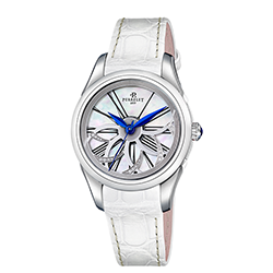 На циферблатах установлены центральные стрелки часов и минут листовидной формы синего цвета, а также тонкая синяя центральная секундная стрелка. Индикация на циферблате представлена римскими цифрами (I-XI) оригинальной формы у первых трёх моделей и чёрными римскими цифрами классической формы у двух последних моделей. Декоративная часть двойного ротора, безусловно, является главным элементом, привлекающим внимание к циферблату. У трёх «цветочных» моделей она инкрустирована бриллиантами, причём у первых двух – имеет одинаковый дизайн. Циферблаты двух последних моделей украшает декоративная часть двойного ротора в форме перламутрового полукруга.