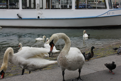 Если мы в Екатеринбурге живем и думаем, куда бы поехать на озеро, то у них такой проблемы нет: все обустроено идеально с точки зрения экологии и гармонии. В первый день нашего путешествия было жарко, плюс тридцать градусов, и люди выходили из отелей и тут же, у берега озера, купались. Практически на всей набережной стояли таблички с надписями, но не запрещающими, как мы привыкли, а наоборот - «Купаться можно!» Я с удовольствием прогулялась по улочкам Люцерна, прошлась по старинному деревянному мосту с крышей - он такой завораживающий! Конечно, не отказала себе в удовольствии покормить птиц - уток и красавцев-лебедей.