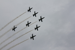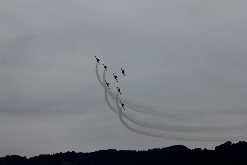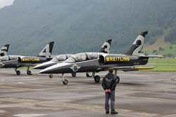 Утром мы отправились в аэропорт. Нас торжественно встретила команда пилотов Breitling, в которую, кстати, входила красивая девушка - позже мы узнали, что она является воздушной акробаткой. Мы увидели потрясающее авиапредставление от Jet Team - первой в мире профессиональной гражданской команды, летающей на реактивных самолетах.