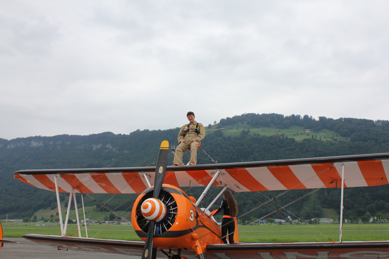 Очень зрелищным был такой вид «активности», как windwalker. Я не предполагала, что так можно делать. Суть в том, что на небольшой самолетик, на самый его верх прикреплен стул, к которому привязывают человека. Самолет взлетает, и человек летит - наверху, наслаждаясь ветром, бьющим в лицо, видами, открывающимися из-под крыльев - крыльев Breitling. Интересно, что девушки-акробатки на таких самолетах умудряются выполнять различные трюки.