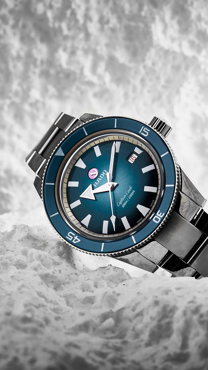 Эта модель Captain Cook является современной версией оригинальных часов 1962 года выпуска из архива Rado. Впечатляющие, массивные и изготовленные из современных материалов новые часы Captain Cook диаметром 42 мм обладают водонепроницаемостью до 30 бар (300 м).