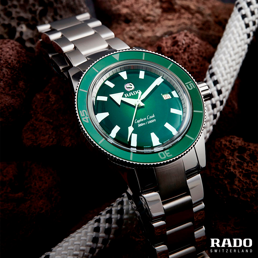 - Логотипы Rado и Captain Cook белого цвета.