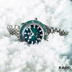 В коллекции представлены модели с синим, зеленым или белым циферблатом и безелем из высокотехнологичной керамики, который обеспечивает устойчивость к появлению царапин, а автоматический механизм обеспечивает непрерывную работу часов Captain Cook. Часы оснащены браслетом с узором «рисовое зерно» в винтажном стиле, который можно с легкостью заменить на другие ремешки благодаря системе EasyClip от Rado и придать вашему стилю индивидуальность в считанные секунды.