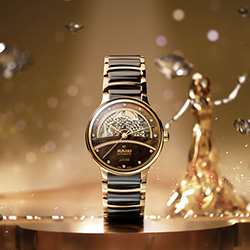 Завершает трио Rado Centrix Open Heart (R30230922) — элегантная модель с акцентом на ювелирный блеск. Корпус и браслет сочетают нержавеющую сталь с PVD-покрытием цвета розового золота и коричневые керамические вставки. Циферблат и корпус украшены 86 бриллиантами плюс ещё 12 бриллиантов служат часовыми метками. Внутри работает автоматический калибр R734 с пружиной Nivachron™ и 80-часовым запасом хода - часы, в которых высокий класс механики сочетается с вечерним, по-настоящему праздничным дизайном.