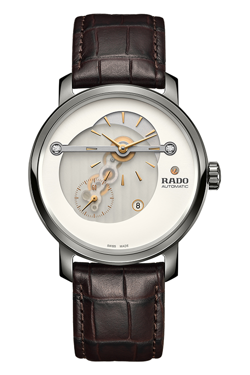 Лаконичные детали и крупный, открытый, хорошо читаемый циферблат моделей DiaMaster решены в минималистическом стиле, свойственном Rado. Механизм, украшенный традиционным узором Côtes de Genève, открыт взору. Через прозрачную крышку корпуса можно наблюдать завораживающее движение шестеренок и зубчатых колес. Это зрелище привлекает с первого взгляда, а интерес к созерцанию работы механизма сохранится еще на протяжении многих лет.