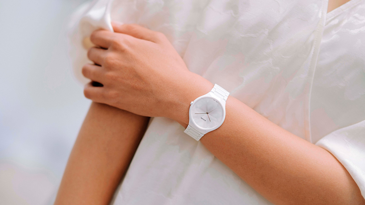 Ход времен года завершает белоснежная зима. Воплощающая в себе чистоту и благородство высокотехнологичная керамика белого цвета, полированный корпус-моноблок, сапфировое стекло в виде снежинки подарят вам праздничное настроение. Окантовка морозного белого цвета окружает серебристый циферблат и логотип темно-серого цвета, а кварцевый механизм R420 позаботится о надежном и точном отображении времени в ожидании весны. И без того легкая и гладкая высокотехнологичная керамика в белом цвете дарит еще более комфортные ощущения.