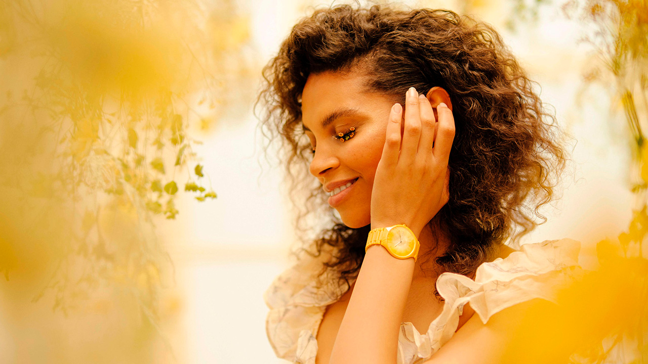 Следующая модель отражает радостное настроение лета. Корпус конструкции моноблок выполнен из высокотехнологичной керамики желтого цвета и дополнен циферблатом с градиентом от серебристого к желтому, защищенным сапфировым стеклом в огранкой в форме солнца. Заводная головка и браслет изготовлены из керамики солнечно-желтого цвета, чтобы сочетаться с корпусом и окантовкой циферблата. Титановая трехзвенная застежка и задняя крышка корпуса, защищенная сапфировым стеклом с надписью GREAT GARDENS OF THE WORLD дополняют все модели линии.