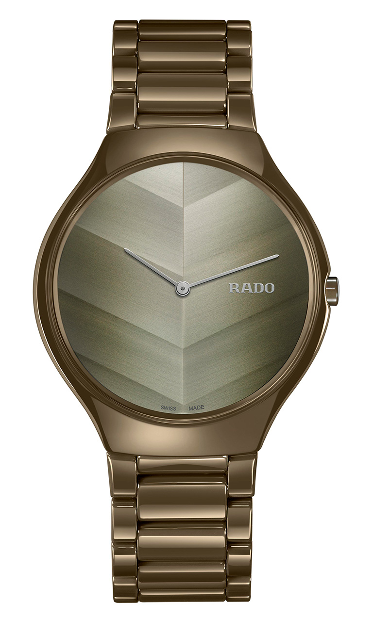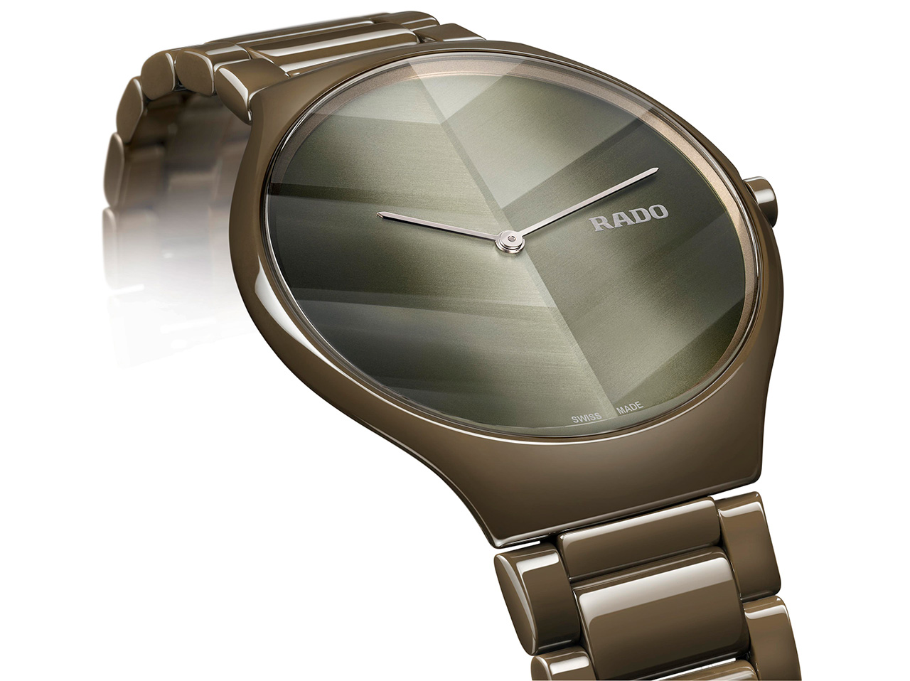 Осень воплощает модель в темно-оливковом оттенке. Стекло со специальной огранкой в виде листка защищает циферблат с градиентом от серебристого к оливково-зеленому, окантовку оливково-зеленого цвета и логотип Rado темно-серого цвета. Внутри этой модели, как и в других часах этой серии, сверхнадежный кварцевый механизм R420.