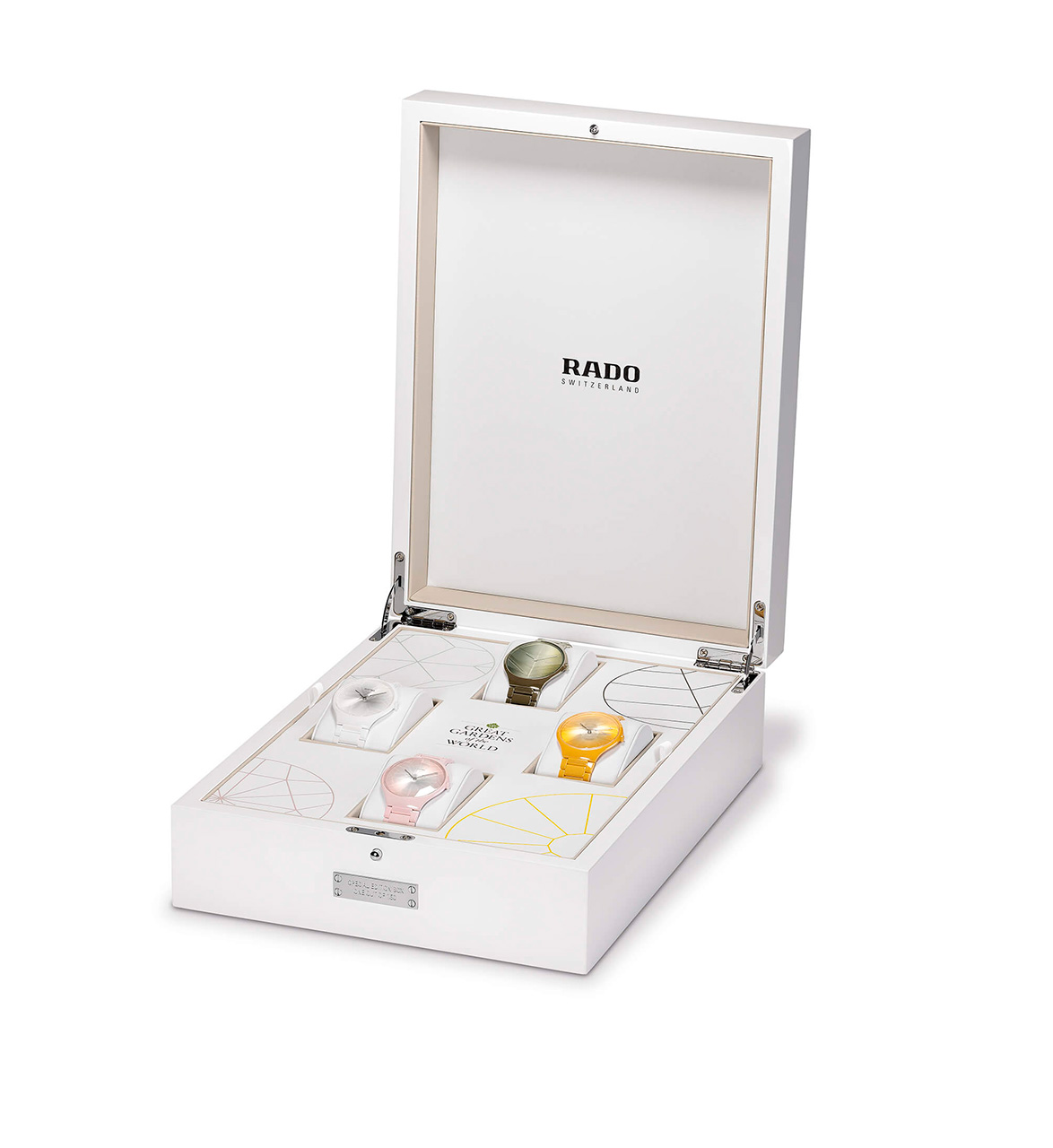 Будучи экспертом в материалах, компания Rado использовала весь свой опыт в работе с цветной высокотехнологичной керамикой и воплотила в первой совместной коллекции красоту Земли и природы. Необычайно изящные и удобные тонкие часы стали выбором номер один для ценителей часов. В 2021 году коллекция была дополнена тремя новыми моделями под названием Rado True x Great Gardens of the World, которые совместили в себе усовершенствованные технические характеристики и дизайнерские акценты — листья дуба, цветы жасмина, перламутр.