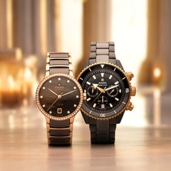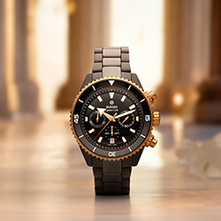 Кампания The Time Is Now объединяет два направления Rado - мощную технологичность и ювелирную элегантность. В первой модели Captain Cook бренд раскрывает свой авантюрный дух: корпус из матовой высокотехнологичной керамики диаметром 43 мм с полированными вставками розового золота, автоматический калибр R801 и хронограф. Прочные, устойчивые к царапинам и лёгкие - эти часы созданы для тех, кто живёт активно, любит движение и ценит надёжность в каждой детали.