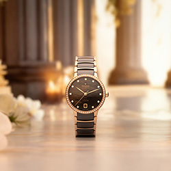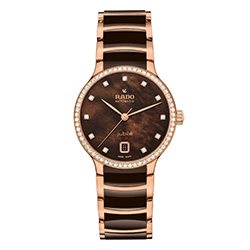 Во второй модели Centrix Diamonds Rado показывает утончённость и роскошь. Корпус из нержавеющей стали с PVD-покрытием розового золота, безель, инкрустированный 60 бриллиантами Top Wesselton, и перламутровый циферблат с 11 бриллиантами создают гармонию блеска и деликатности. Автоматический калибр R763 с антимагнитной пружиной Nivachron™ обеспечивает точность, долговечность и мягкий ход механизма. Это часы для тех, кто ценит женственность, эстетику и швейцарскую точность.