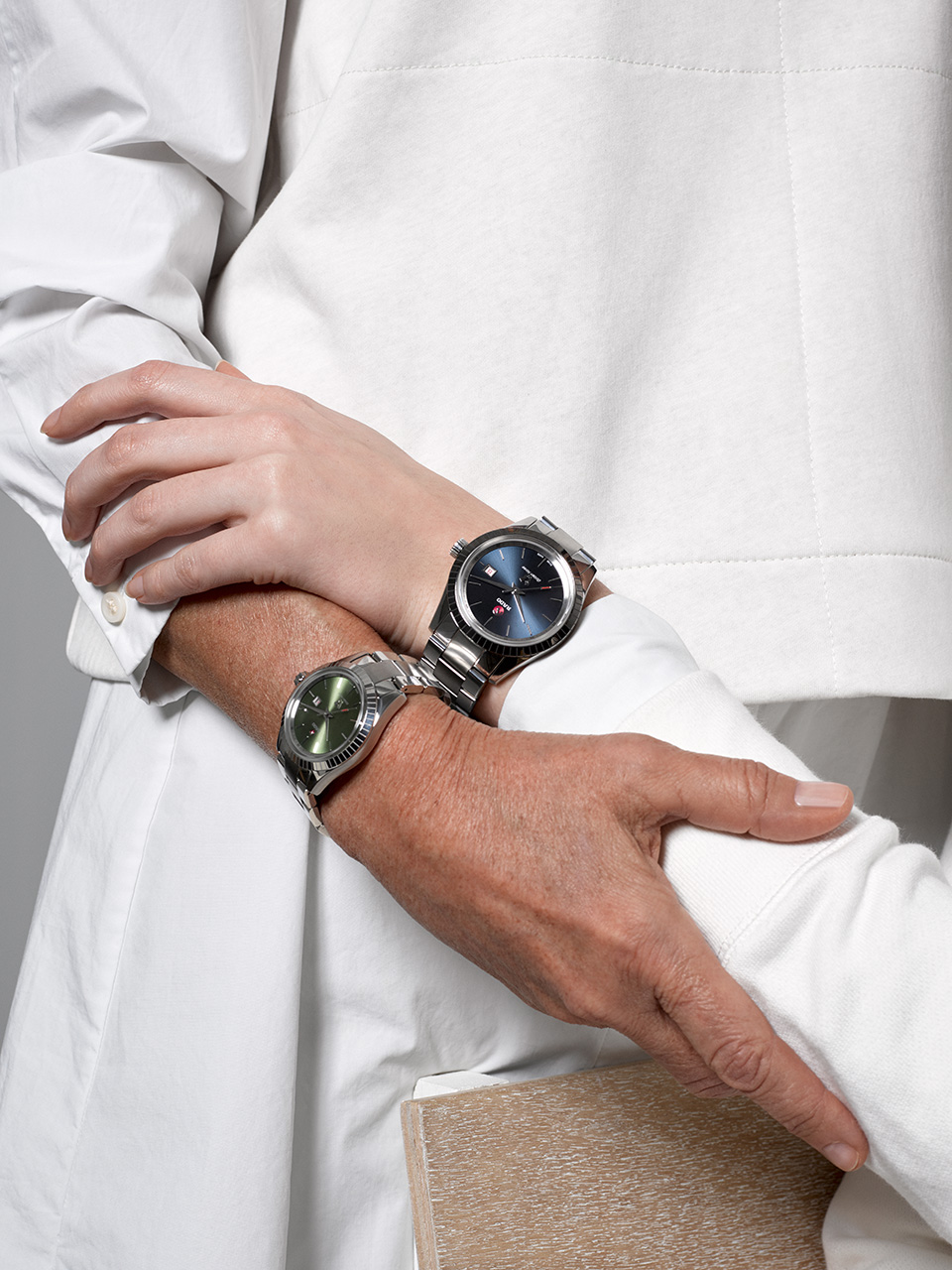 Модели диаметром 42 мм представлены с темно-серым, синим, зеленым и серебристым циферблатом и могут быть оснащены браслетом на ваш выбор: кожаным ремешком, трехзвенным браслетом или браслетом из нержавеющей стали с узором «рисовое зерно». Современные технологии в сфере часового производства позволяют производить замену ремешков без использования специальных инструментов. Эти массивные модели часов оснащены швейцарским автоматическим часовым механизмом ETA C07, который обеспечивает увеличенный запас хода до 80 часов.