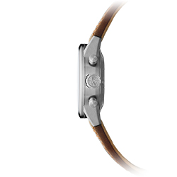 Модель Freelancer 7732-TIC-50421 оснащена ремешком из телячьей кожи коричневого цвета, который застегивается на раскладывающуюся застежку из нержавеющей стали с двойной кнопочной системой защиты и логотипом RW. Эта модель сохраняет фирменные элементы коллекции Freelancer: сужающиеся «ушки» корпуса, которые удобно изгибаются к запястью, и внешние кнопки хронографа. Завинчивающаяся задняя крышка корпуса из стали с сапфировым стеклом создает герметичную защиту, обеспечивая водонепроницаемость до 100 метров.