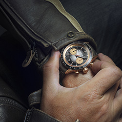 Эта модель включает в себя ряд полезных функций. Шкала тахиметра, расположенная на безеле, позволяет определить скорость мотоцикла или автомобиля на известном расстоянии. Расположенная на бронзовой части по краю циферблата шкала пульсометра позволяет определить частоту сердечных сокращений человека. Примечательной особенностью этого циферблата является удивительная игра оттенков, глубины и текстуры, что придает часам особый изысканный вид.