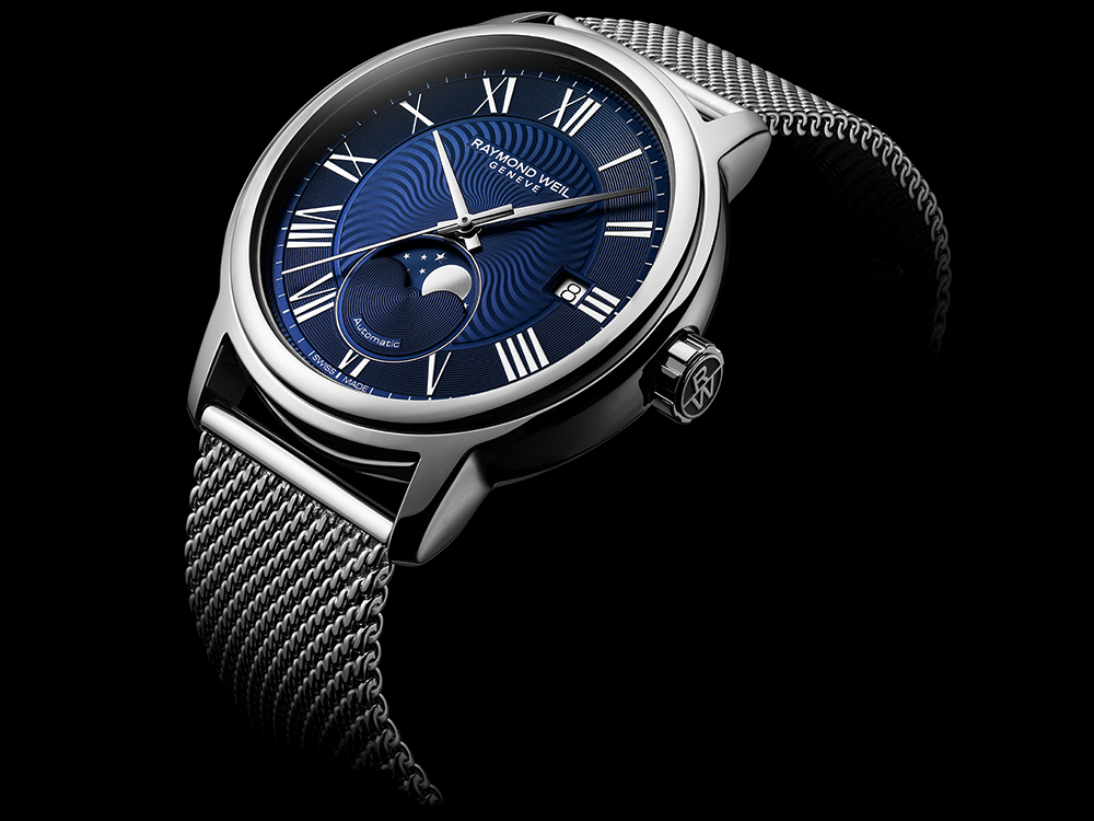 RAYMOND WEIL представляет модель Moon Phase из коллекции Maestro — часы в классическом стиле с элегантным индикатором фаз Луны. Новый элемент синхронизирует ритм времени со звездами и выполнен в лучших традициях швейцарского часового дела.