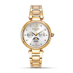 Модель Dreamline Moonphase от Roamer of Switzerland олицетворяет утонченную женственность и гармоничное сочетание классики с современными деталями. Перламутровый циферблат с сияющими камнями и элегантной луной добавляют изящества этому украшению.