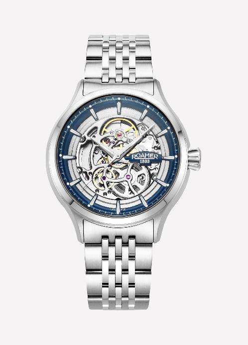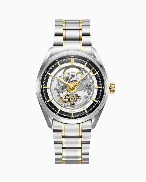Коллекция Roamer отражает два приоритетных направления развития бренда - сдержанную классику и техническую выразительность. В первой модели Pro Auto 42 мм воплощена строгая элегантность. Корпус из нержавеющей стали с золотыми акцентами и частично чёрный циферблат создают образ уверенности и статуса. Автоматический механизм обеспечивает точность и плавный ход, а антибликовое сапфировое стекло защищает поверхность от царапин. Диаметр 42 мм делает модель универсальной и одинаково гармоничной в деловом и повседневном образе. Эти часы символ вкуса и надёжности, подчеркивающий уверенность своего владельца.
