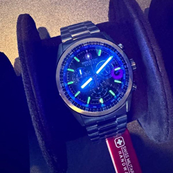 Формат тренинга - отличный шанс узнать нечто новое даже самым умным его посетителям. Ведущие рассказывают о новых коллекциях компании, её истории и предлагают различные маркетинговые стратегии по продвижению их товара. Этот тренинг не стал исключением: несколько весьма интересных моделей от Swiss Military Hanowa были доступны к детальному изучению прямо в зале проведения. Например, дали очень дельный совет: подсвечивать часы ультрафиолетовым фонариком, чтобы оценить luminova покрытие, светящееся в темноте.