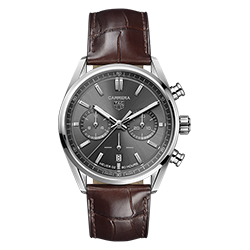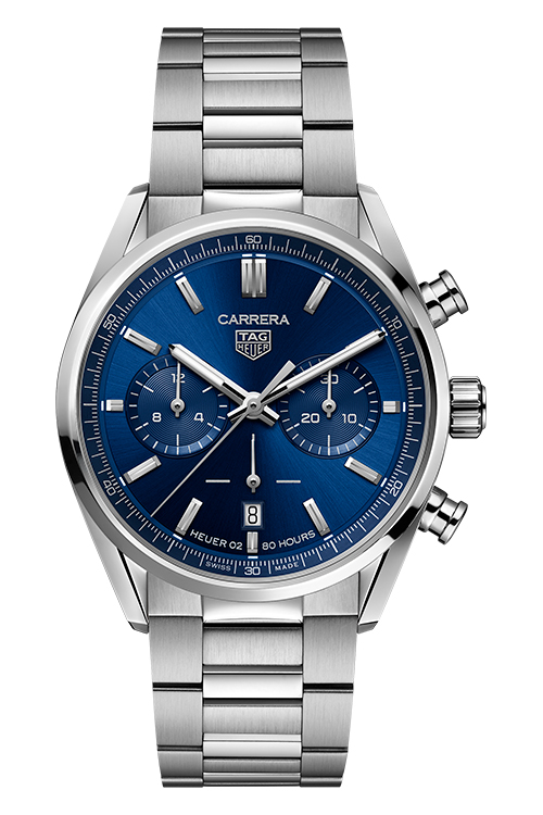 Изысканность новой версии TAG Heuer Carrera подчеркивает лаконичный безель из нержавеющей стали. У него отсутствует тахиметрическая шкала, чтобы передать эстетику легендарных Heuer Carrera с серебристым циферблатом, которые впервые выпущены в 1963 году. Корпус часов диаметром 42 мм оснащен кнопками и дополнительными счетчиками на циферблате – свидетельство того, что новые часы обладают функцией хронографа. Независимо от цветового решения циферблата (он может быть в матово-черном или синем, темно-сером либо серебристом цвете с эффектом sunray) в положениях «3 часа» и «9 часов» расположены дополнительные счетчики, декорированные в технике azurage. Над небольшим окошком даты в положении «6 часов» установлен малый постоянный счетчик секунд. Пульсирующим сердцем этого классического хронографа TAG Heuer Carrera стал фирменный механизм Calibre Heuer 02.