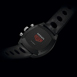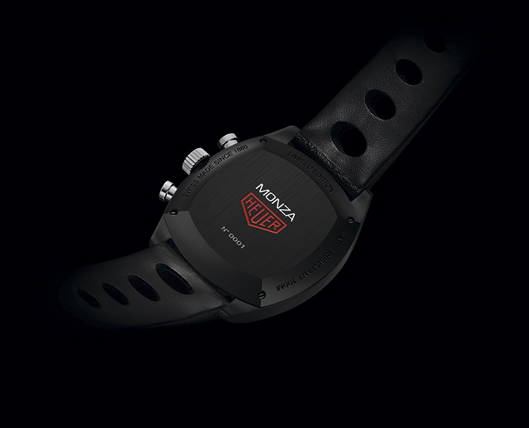В-третьих, комплектация чёрным перфорированным ремешком из натуральной кожи. Смена поколений отражена в увеличении диаметра корпуса с 39 мм до 42 мм, замене стали на титан, а также чёрного PVD-покрытия – на покрытие из карбида титана. Кроме того, современная версия часов «Tag Heuer Monza» оснащена не только тахиметрической шкалой для измерения скорости, но и пульсометром для измерения сердечного ритма.