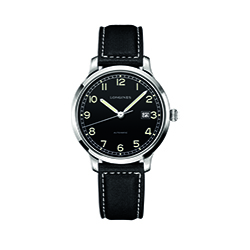 На матовом чёрном циферблате находятся арабские цифры (1-12) белого цвета, центральные родиевые стрелки часов, минут и секунд с сатинированным покрытием, окошечко даты напротив отметки «3 часа», минутная шкала. Цифры, а также часовая и минутная стрелки обработаны фирменным люминесцентным составом «Superluminova». Циферблат надёжно закрыт устойчивым к царапинам сапфировым стеклом с внутренним многослойным антибликовым покрытием. Водонепроницаемость часов составляет 30 м (3 атм.).