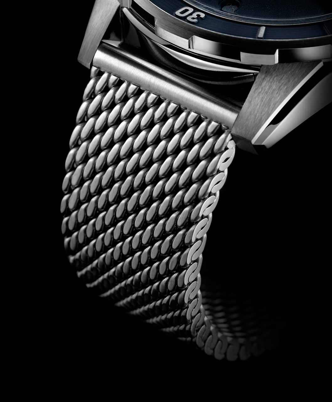 Модель из лимитированной коллекции Diver Blue Shark Limited Edition (выпущена в количестве 300 экземпляров) выполнена из нержавеющей стали с PVD-покрытием. Синий циферблат гармонирует с цветом безеля. Ремешок декорирован ярко-оранжевой строчкой. На задней крышке нанесена гравировка синей акулы – по аналогии с белой акулой, изображенной на модели Diver Great White диаметром 44мм.