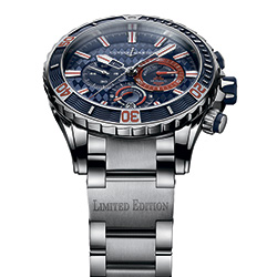 Новинка представляет собой элегантные спортивные яхтенные часы, пополнившие направление «Diver Chronograph» из коллекции «Diver» – абсолютно надежных инструментов для профессионалов и любителей подводного и надводного плавания. Новые часы «Ulysse Nardin Diver Chronograph Monaco Special Limited Edition» были созданы в рамках партнёрства с Monaco Yacht Club – главным организатором важнейшего ежегодного события в мире яхтенной индустрии под патронажем Альбера II2 и отразили в своём дизайне цветовую гамму государственной символики Княжества Монако3 – места постоянного проведения грандиозного яхтенного шоу.