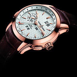 Циферблат часов «Perpetual Manufacture» может быть белого или черного цвета. Он декорирован узором гильоше с множеством волнистых линий, напоминающих морскую рябь. По контуру безеля расположена 24-часовая временная шкала, являющаяся индикацией второго часового пояса. На циферблате находятся центральные стрелки часов, минут, центральная стрелка-указатель времени второго часового пояса, накладные условные часовые индексы (стрелки покрыты люминесцентным составом белого цвета), а также маленькая секундная стрелка и указатели года, месяца, дня недели, даты.