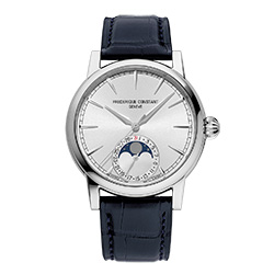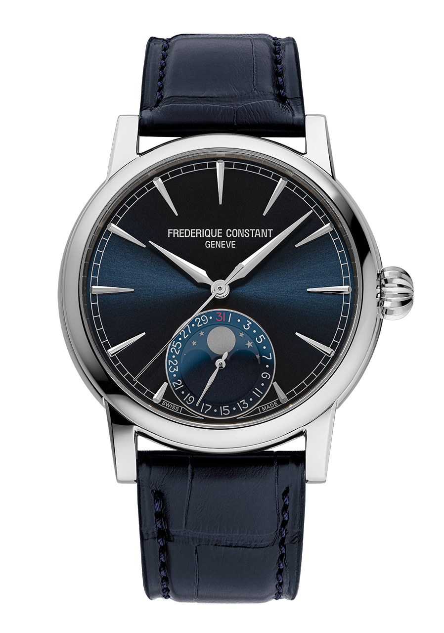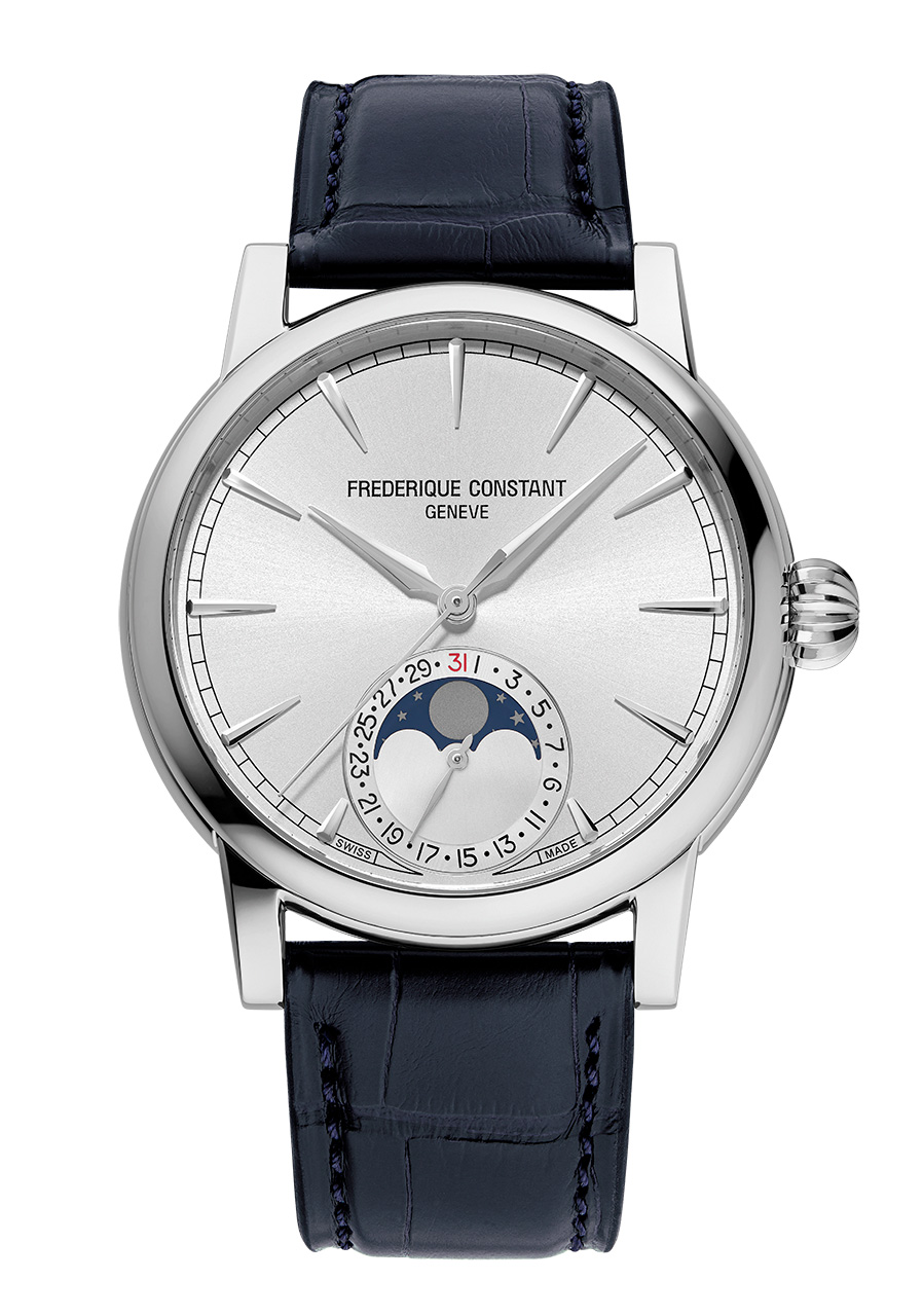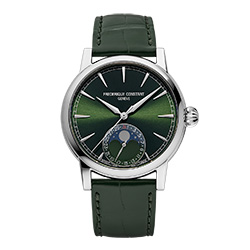 Флагманская модель Classic Moonphase Date Manufacture вышла в трех новых версиях. Стрелки парят над циферблатом в стальном корпусе диаметром 40 мм с изысканным «солнечным» гильоше, который представлен в сверкающем серебристо-сером, глубоком и современном темно-синем или оригинальном ярко-зеленом. Минутная шкала выполнена в стиле «железной дороги», а заводная головка имеет форму луковицы. Стрелки приводятся в движение новым механизмом FC-716 собственной разработки бренда с 72-часовым запасом хода. Теперь на механизме вместо прежних круговых мотивов появился волнообразный узор «Côtes de Genève». Его можно созерцать сквозь прозрачную заднюю крышку, обладающую водонепроницаемостью до 50 м (5 бар).