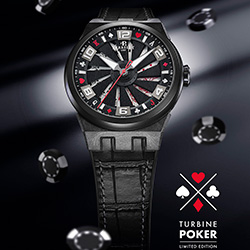 Модель Turbine Poker Royal Flush оснащена фирменным автоматическим калибром P-331- MH. Его исключительная надежность подтверждена двумя сертификатами хронометрии от престижных независимых организаций: COSC (ContrôleOfficiel Suisse des Chronomètres) и Chronofiable®.