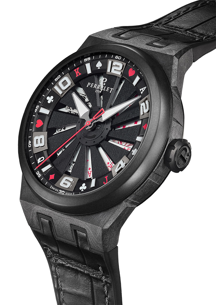 В 2024 году Perrelet предлагает новую модель, посвященную любителям зеленого стола: Turbine Poker Royal Flush, выпущенную ограниченной серией 99 экземпляров. В этой модели присутствует культовая запатентованная в 2009 году технология Turbine. Лопасти турбины приходят в движение при малейшем движении запястья и возвращаются в исходное положение по завершении жеста, создавая приятный игривый эффект. В новой версии Perrelet представлены 12 карт: двойной роял-флеш и пара семерок. На часовой дорожке символы четырех мастей и цифры выделяются красным и белым на черном фоне, чередуясь с арабскими цифрами и индексами. Последние хорошо видны при любом освещении благодаря люминесцентному составу Super-LumiNova, который также подсвечивает стрелки.