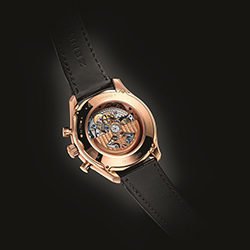 - модель в корпусе из розового золота имеет белый лаковый циферблат с центральными стрелками часов и минут, малой секундной стрелкой, которые отделаны золотым напылением и люминесцентным покрытием «Superluminova» SLN C1, с воронёными фасетными стрелками счётчиков хронографа, покрытыми фирменным люминесцентным составом «Superluminova» SLN C1. На циферблате также установлены: условные часовые фасетные индексы с золотым напылением и люминесцентным покрытием «Superluminova» SLN C1, треугольный указатель даты;